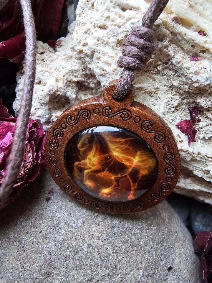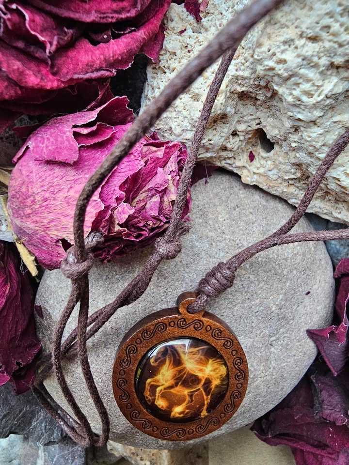 Šis išraiškingas pakabukas su ugniniu arkliu sukurtas kaip energinis palydovas tiems, kurie siekia klestėjimo, gausos, veržlumo ir drąsos žengiant į naują gyvenimo etapą. Reguliuojamo ilgio virvelė leidžia priderinti pakabuką prie įvairių aprangos stilių – nuo kasdienės iki ritualinės ar meditacinės praktikos. Dėvimas arti širdies, jis primena apie vidinį variklį, kuris nuolat kviečia judėti pirmyn.