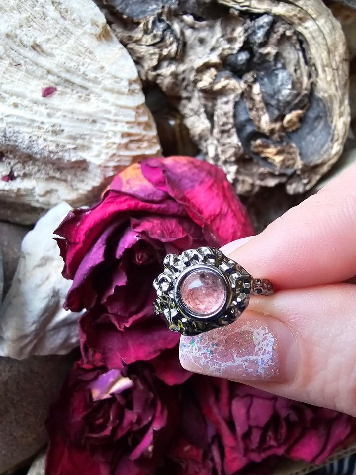 Braškinis kvarcas žiedas (meilė, džiaugsmas)