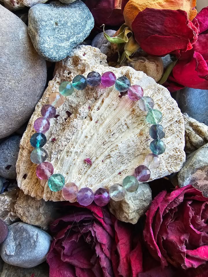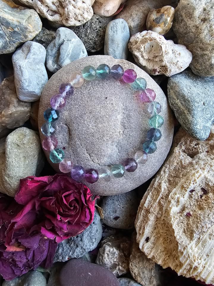 Fluere lot. “tekėjimas, srovė, liūtis, potvynis”. Fluoritas randamas įvairiausių spalvų, sodriai violetinis laikomas vienu iš trečiosios akies atvėrimo akmenų. Ši “tekanti upė“ padės Tau tapti upe ir tekėti savo gyvenimo vingiais. Tai „atsinaujinimo akmuo“, pritrauks naujovių, pokyčių, atsiras drąsos dar labiau judėti į priekį ir keistis tiek išore, tiek savo vidumi.