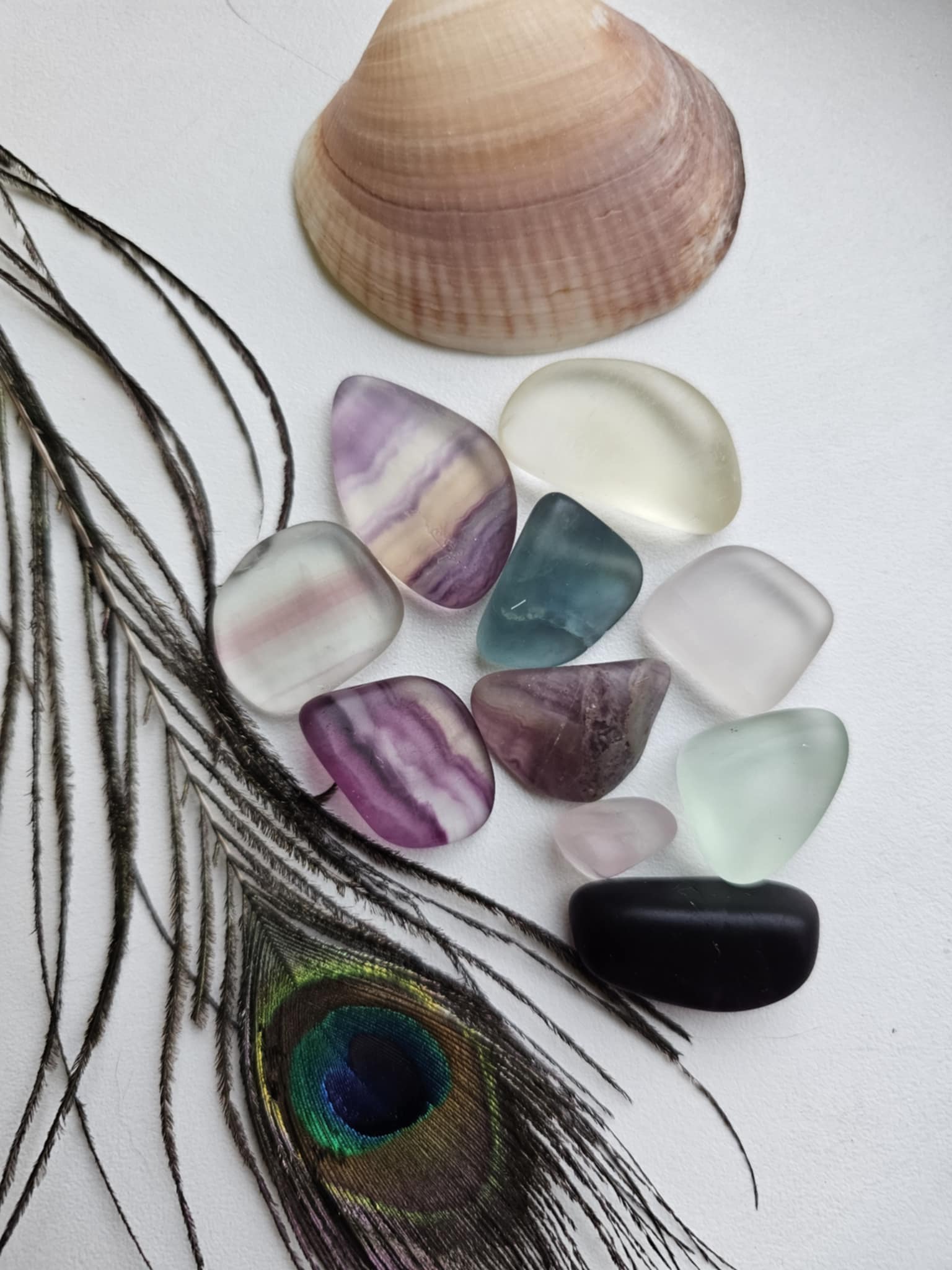 Fluere lot. “tekėjimas, srovė, liūtis, potvynis”. Fluoritas randamas įvairiausių spalvų, sodriai violetinis laikomas vienu iš trečiosios akies atvėrimo akmenų. Ši “tekanti upė“ padės Tau tapti upe ir tekėti savo gyvenimo vingiais. Tai „atsinaujinimo akmuo“, pritrauks naujovių, pokyčių, atsiras drąsos dar labiau judėti į priekį ir keistis tiek išore, tiek savo vidumi.