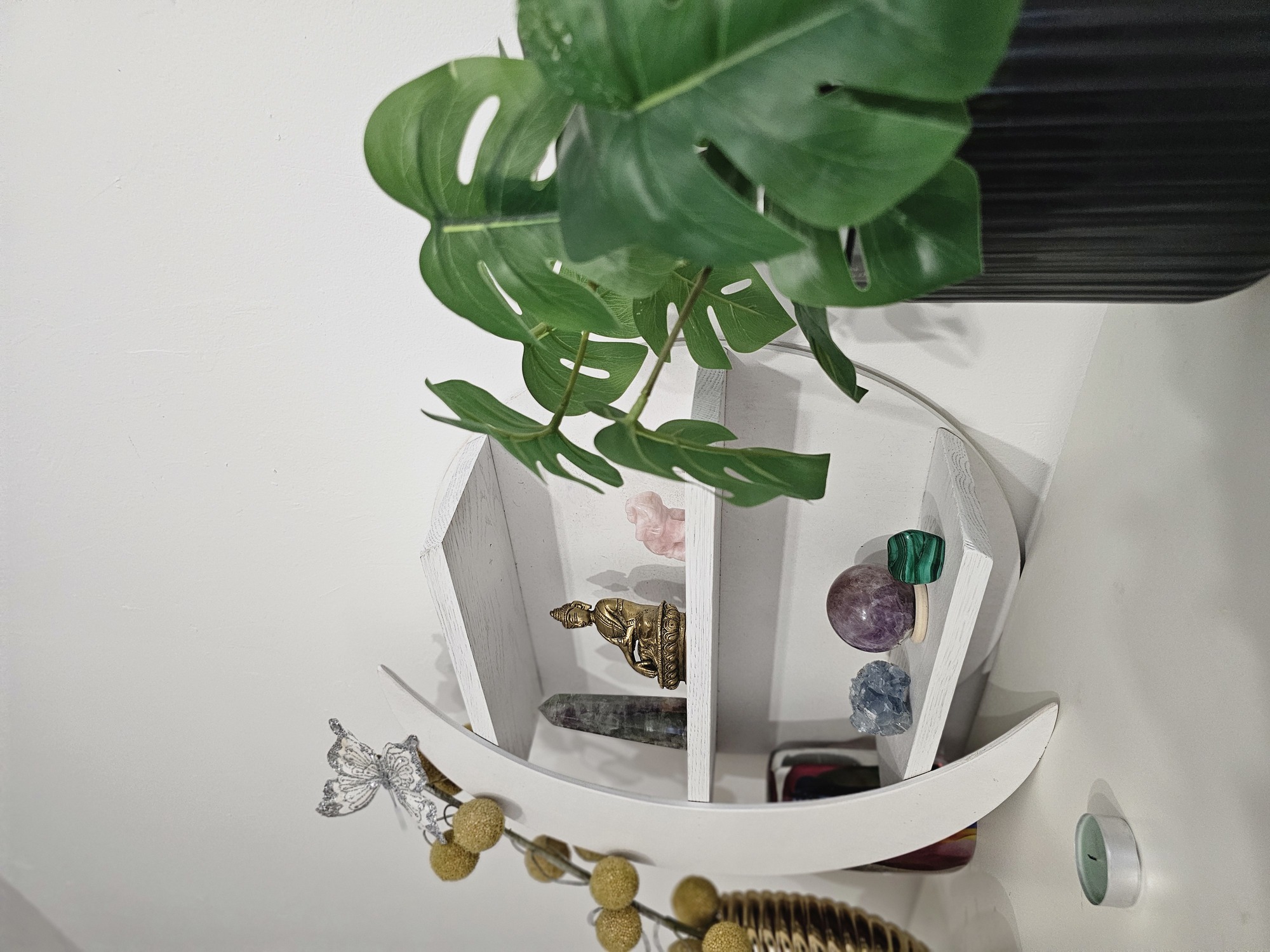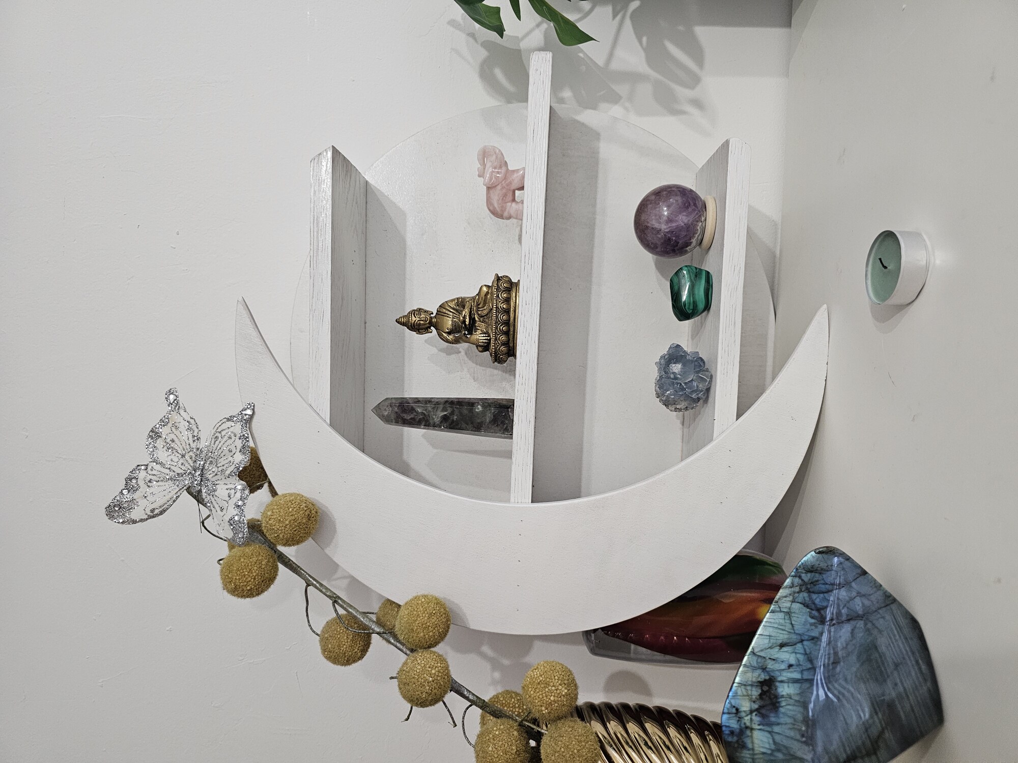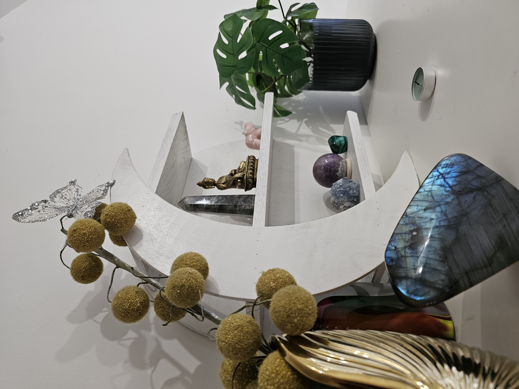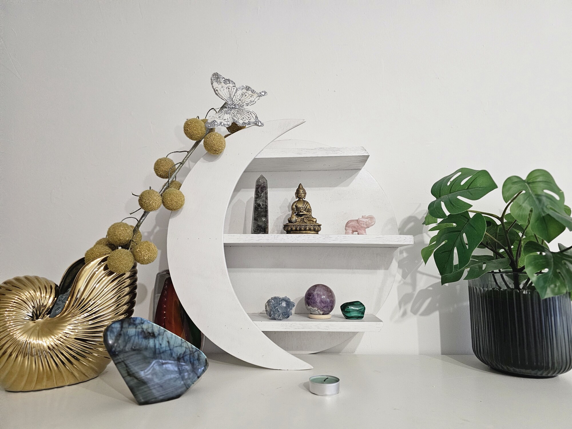 - Puikiai tinka miegamajam, meditacijos kampeliui ar kristalų altoriui.