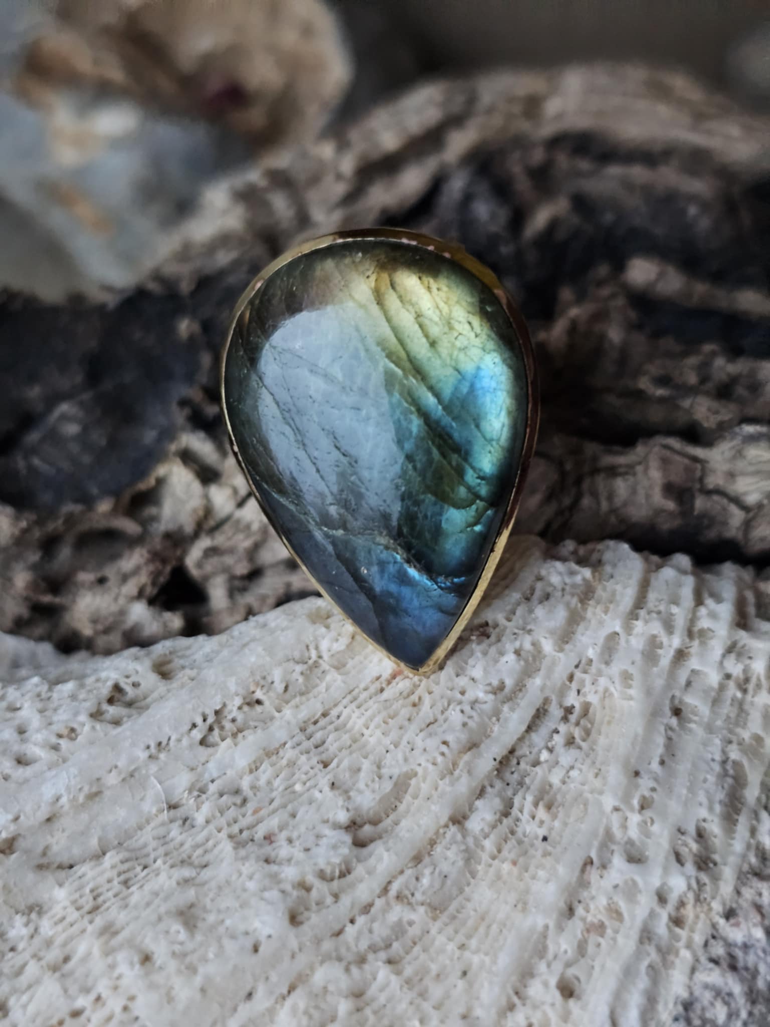 Labradoritas žiedas (apsauga, energija, ryžtas)