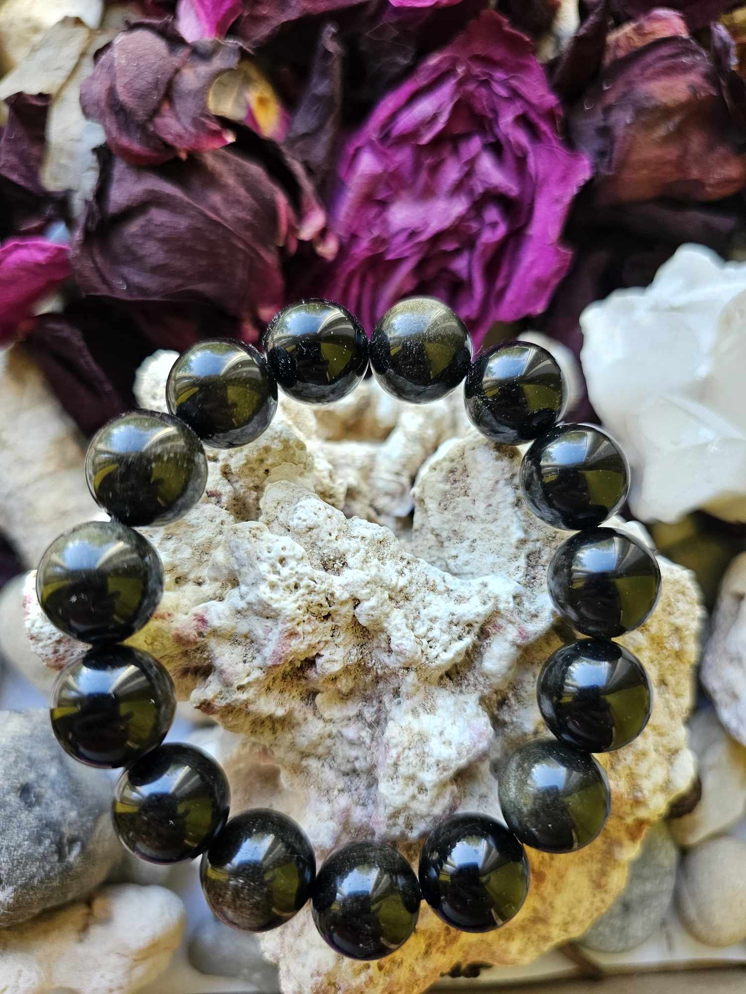 Tai magiškas ir nekasdieniškas akmuo. Jis skirtas astralinių jėgų koncentracijai. Jis iššauks neįsisąmonintas galimybes, sugebėjimus ir pasąmonės problemas į paviršių. Ypač gerai jį naudoti kartu su kalnų krištolu. Jis išryškins emocines blokadas ir padės jas įveikti. Padrąsins ir sumažins norą užsisklęsti savyje, skatins matyti šviesą tunelio gale. Jis stiprins sąmoningumą, įžvalgumą, komunikabilumą, grąžins pasitikėjimą savimi, savo jėgomis. Turi “įžeminantį” poveikį ir padeda prisijungti prie bazės, per stuburą prie Žemės šerdies. Jis kaip skydas saugo nuo negatyvios energijos tiek iš išorės, tiek iš vidaus. Obsidianas suteikia saugumo, pasitikėjimo ir stabilumo jausmą.