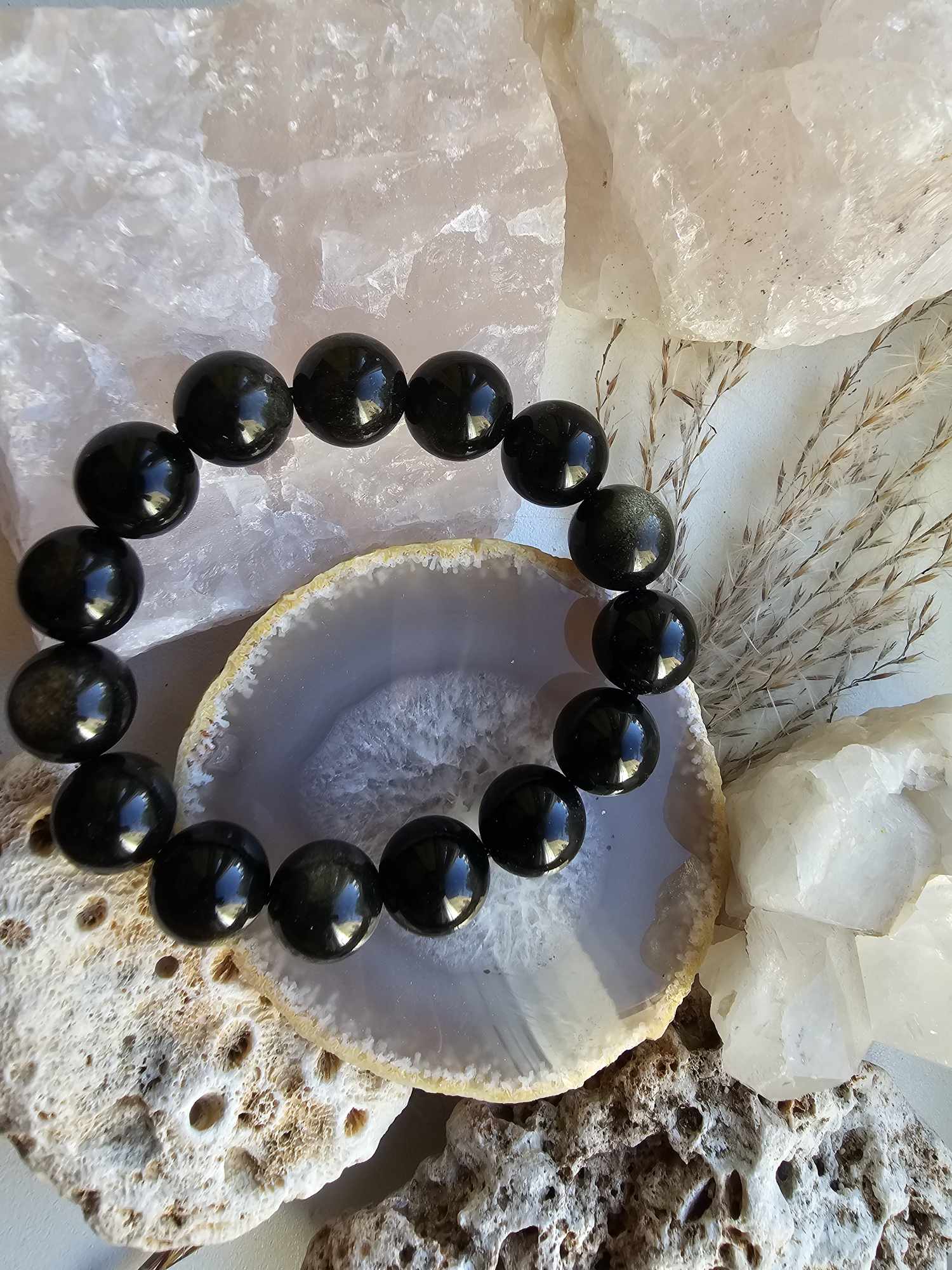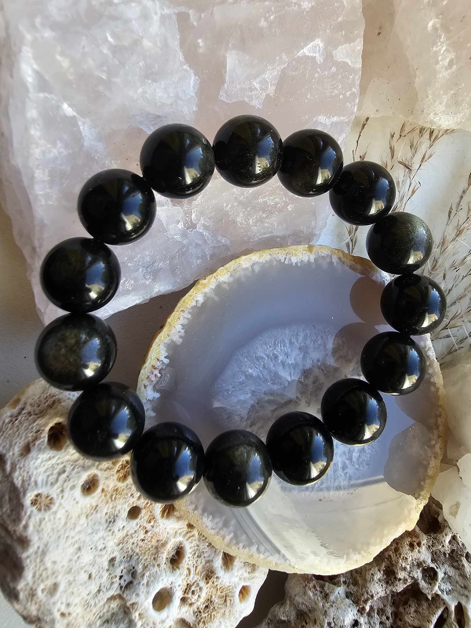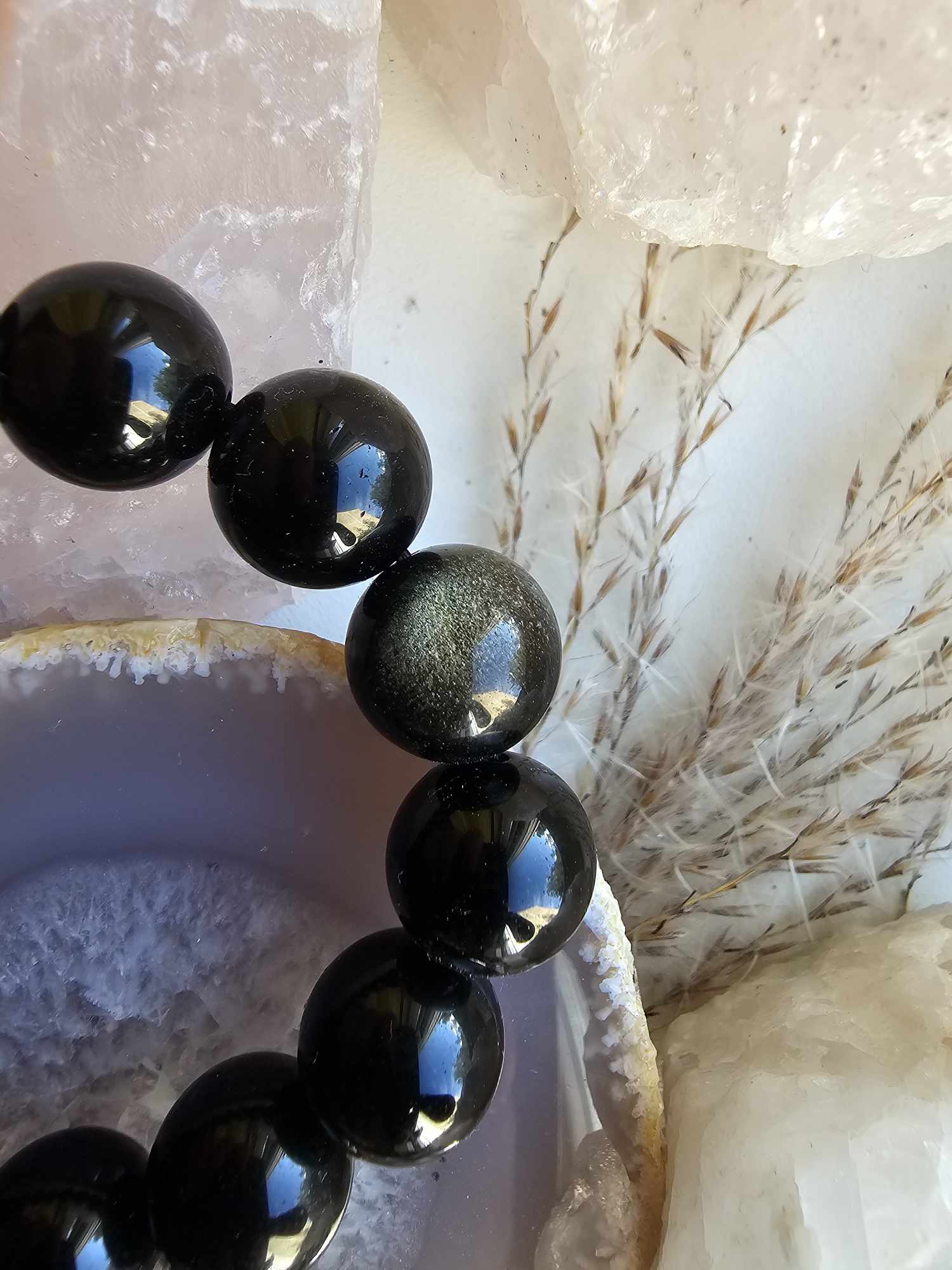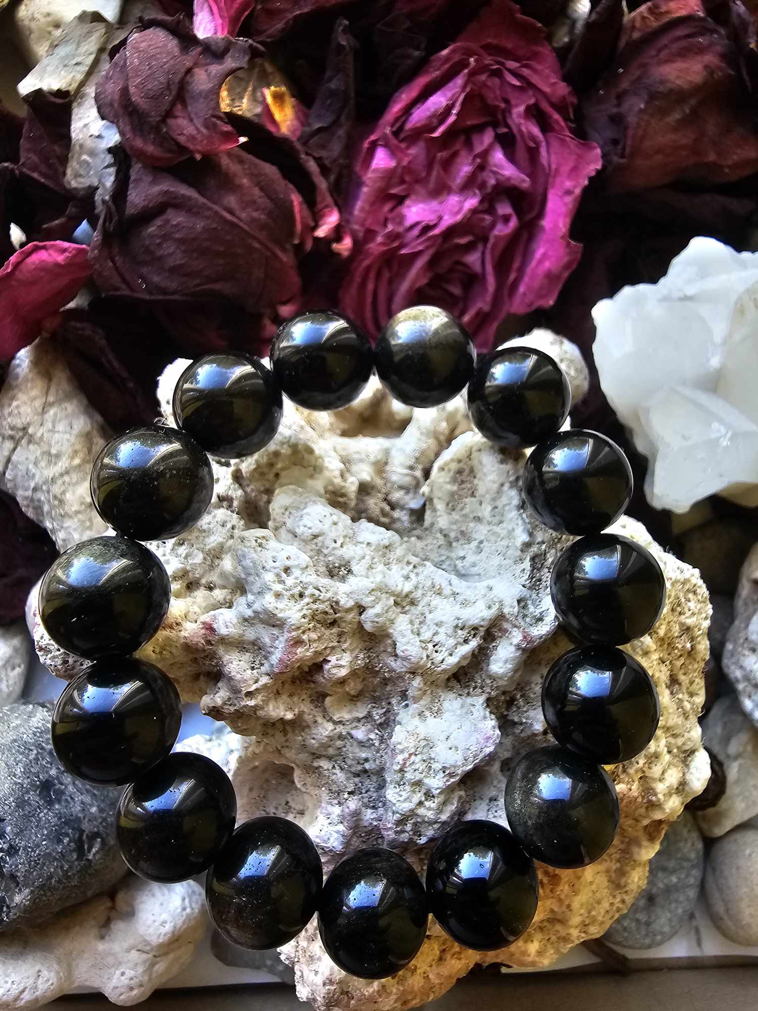 Su obsidianu mes galime pasiekti vientisumą savyje. Suvokti savo teigiamas ir neigiamas puses. Jis padės kovoti už dvasinę laisvę, judėti į priekį, stiprins įžvalgumą, kartais net aiškiaregystę. Obsidianas suteiks neįsivaizduojamą gilumą mūsų emocinei prigimčiai ir padės atsikratyti įkyrių minčių bei nereikalingų poelgių. Jis pašalins neigiamą atmosferos poveikį, darys įtaką dvasiniam kūnui ir padės apsisaugoti nuo mus supančių žmonių agresijos. Jis padės lengviau įveikti gyvenime pasitaikančius sukrėtimus, baimes, dvasines traumas.