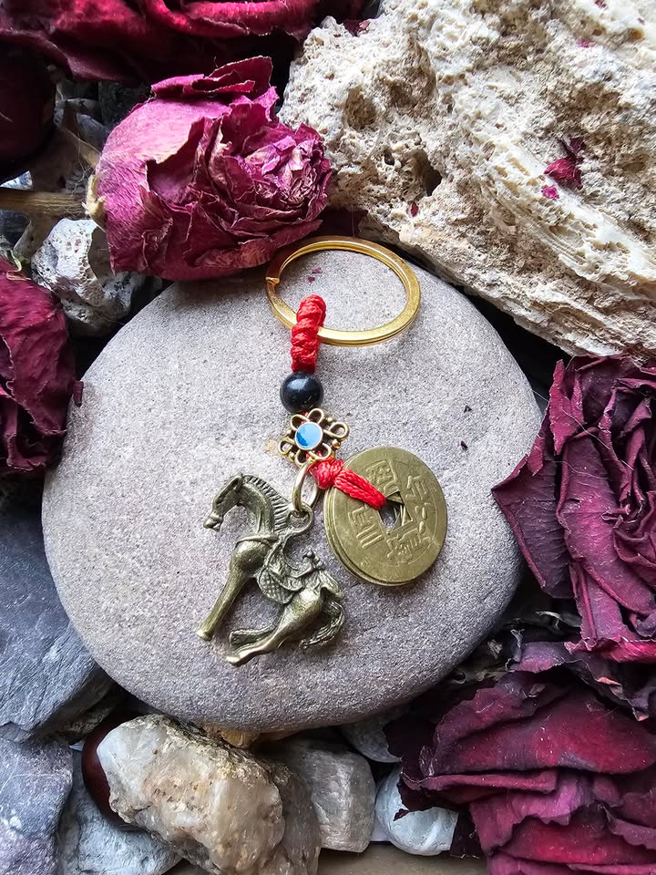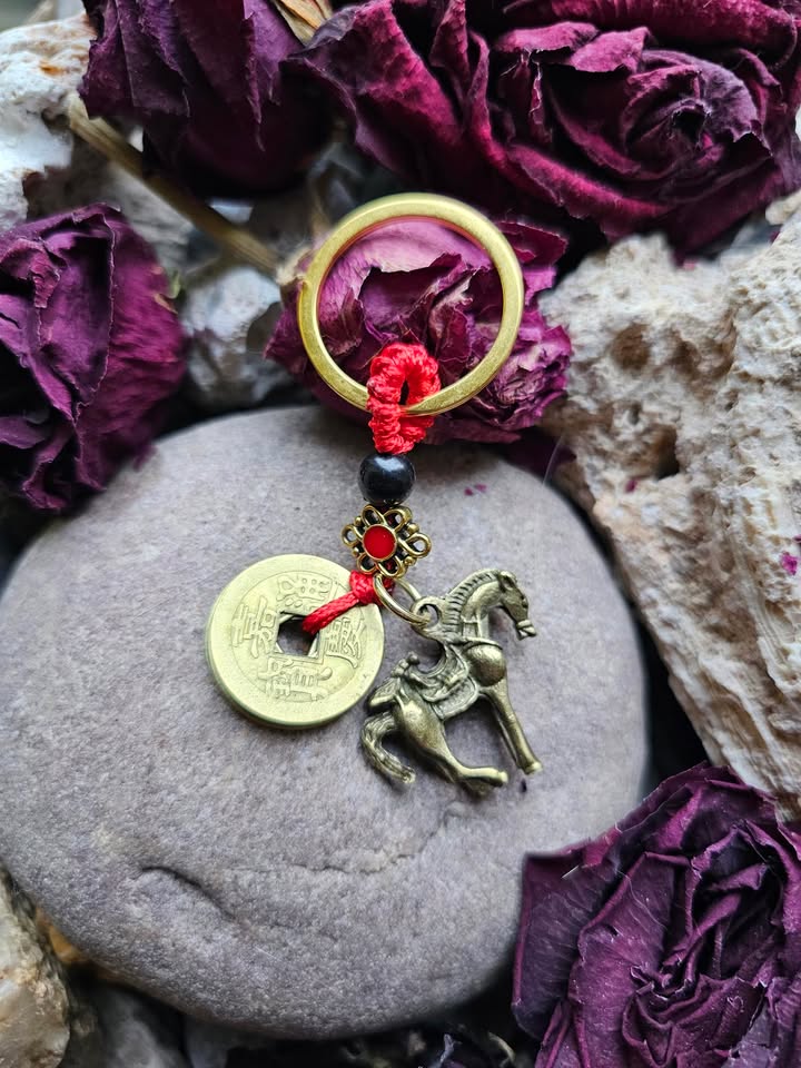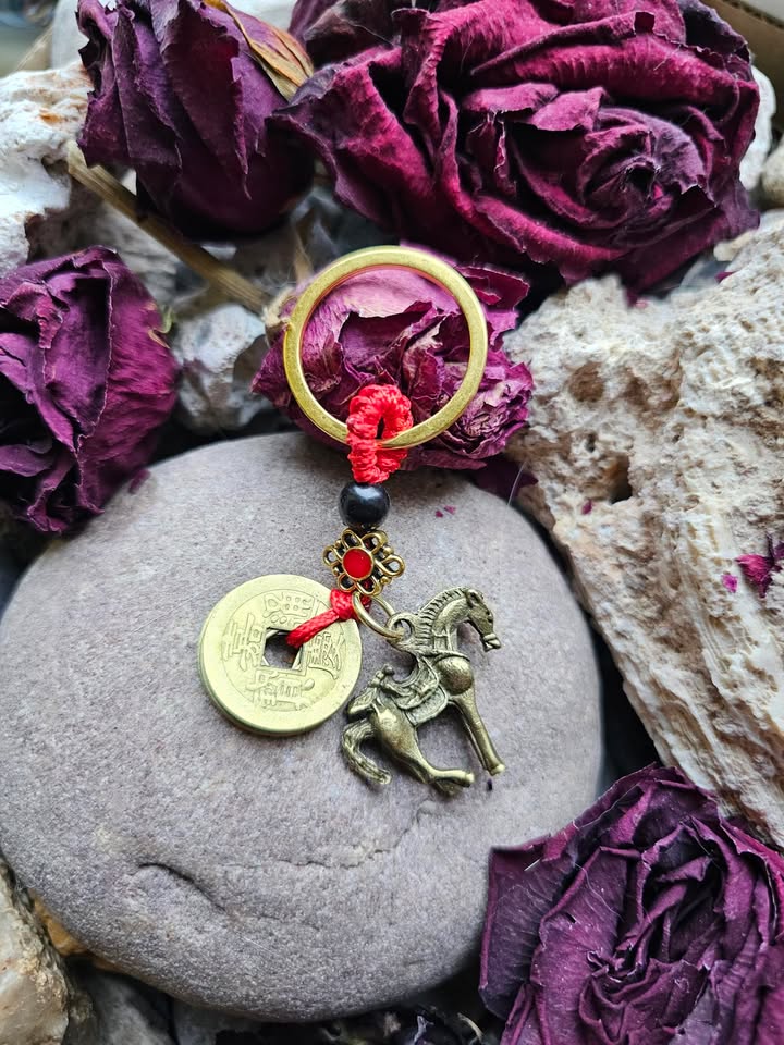 Šis išskirtinis talismanas su galingo žirgo figūrėle ir senovine Feng Shui moneta sukurtas kaip energijos katalizatorius žmonėms, siekiantiems klestėjimo, sėkmės ir vidinės stiprybės. Ryškus raudonas mazgas sustiprina apsaugines savybes, balansuoja energiją, padeda išlikti stabiliai net intensyvių permainų metu.