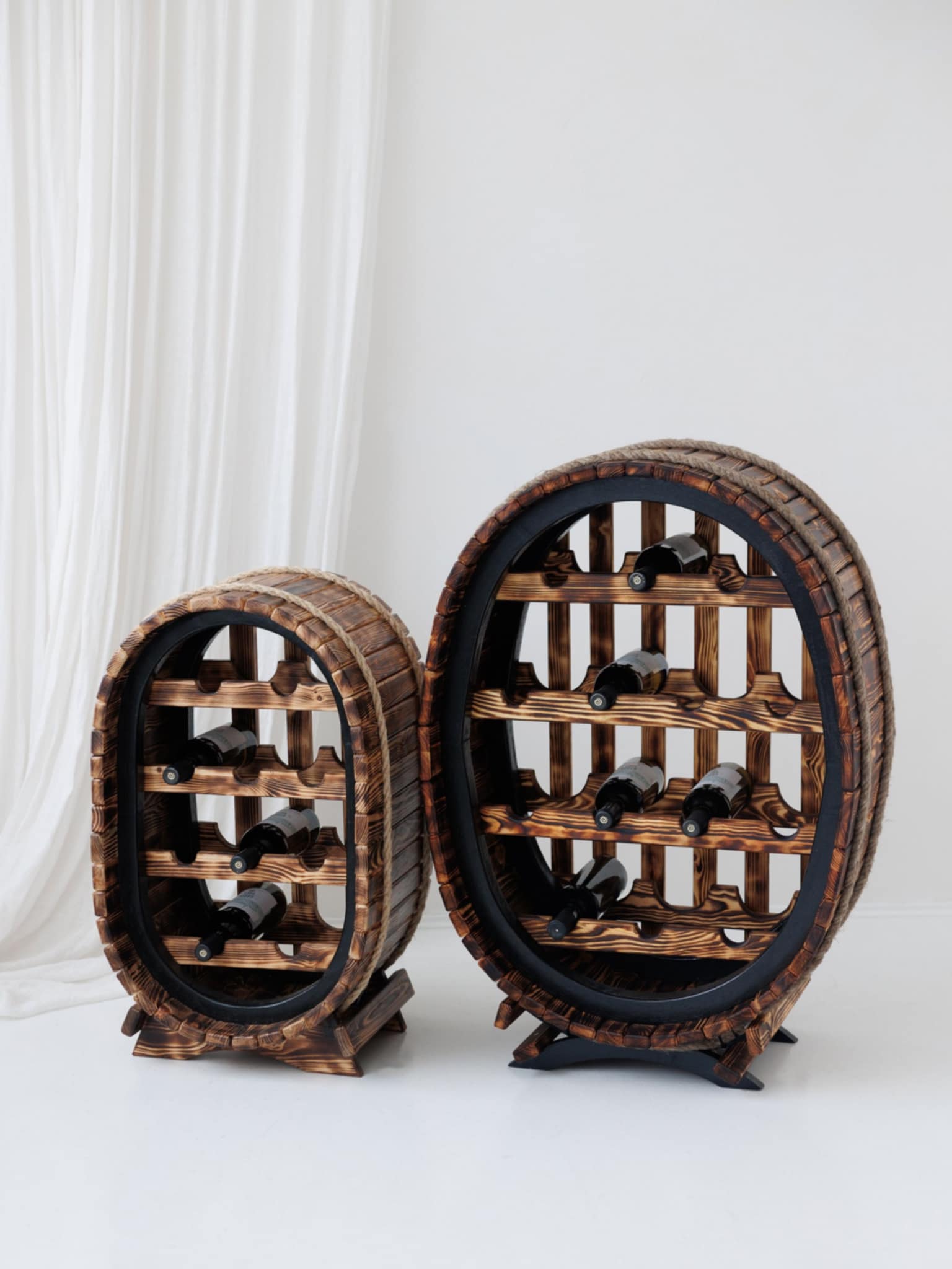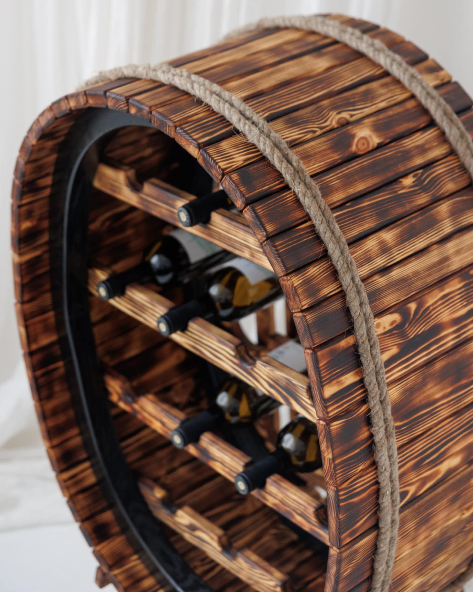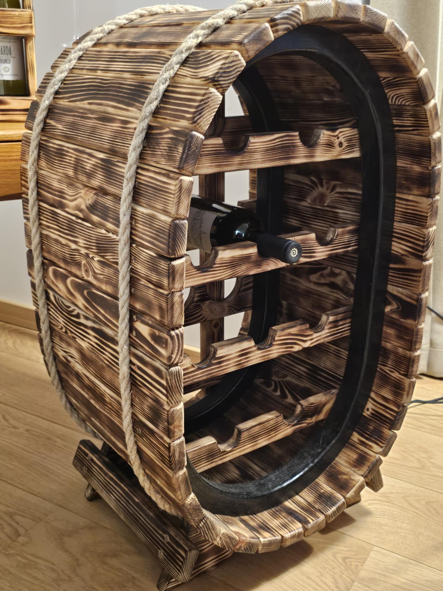 Ši prabangi, meistriškai sukurta rankų darbo vyninė–bačkutė (Didžioji vyninė aukštis 93 plotis 65 cm.)– ne tik praktiškas, bet ir itin estetiškas interjero akcentas. Kiekviena detalė išdirbta su meile ir kruopštumu, todėl šis baldas spinduliuoja išskirtinį dizaino pojūtį bei jaukumą.